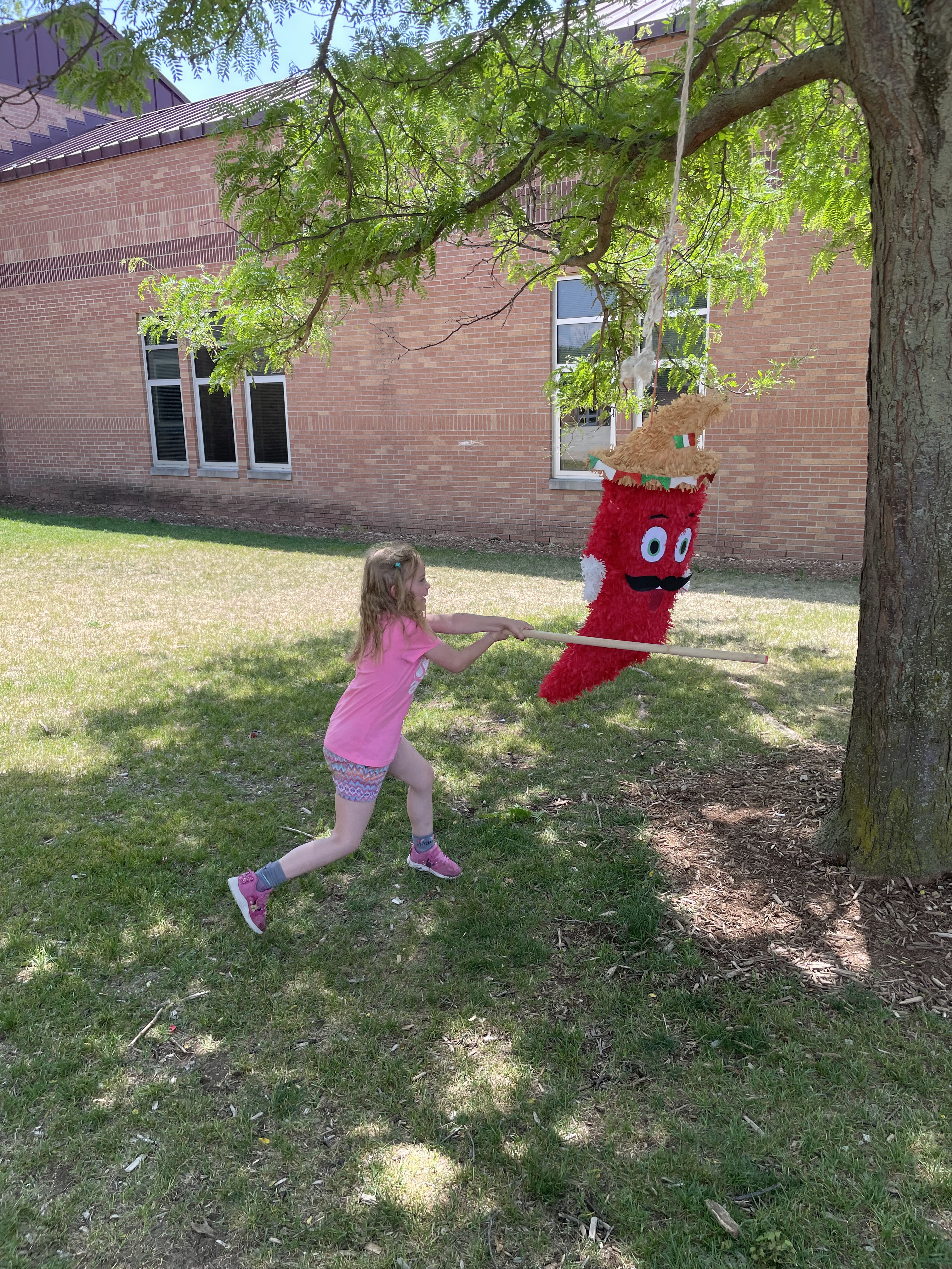 -our piñata celebration for reaching our Spanish goal (our piñata actually lasted for two rounds of hitting!)